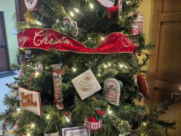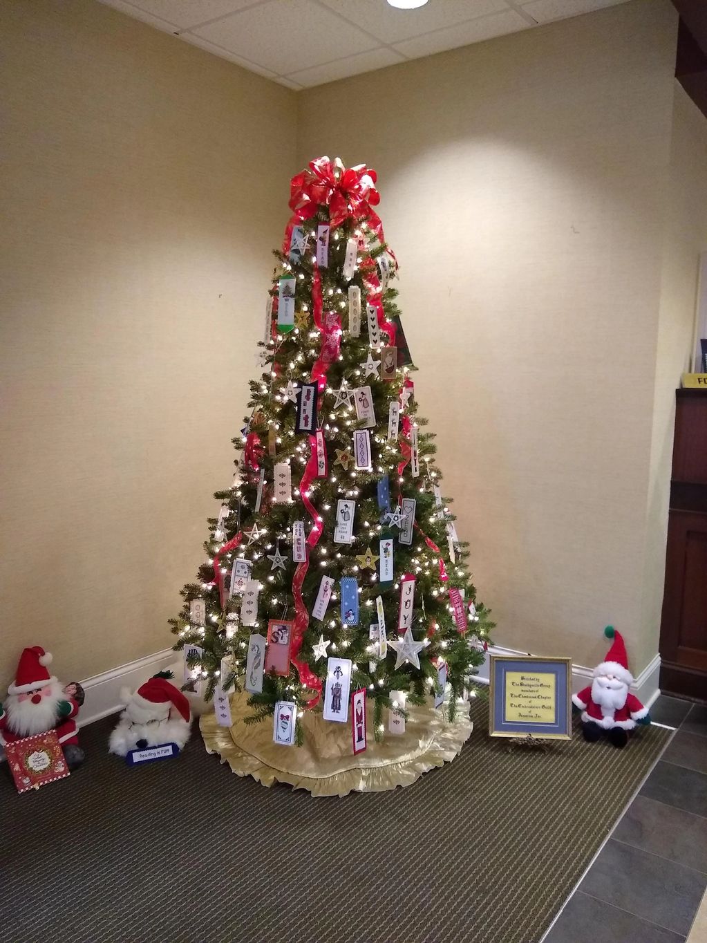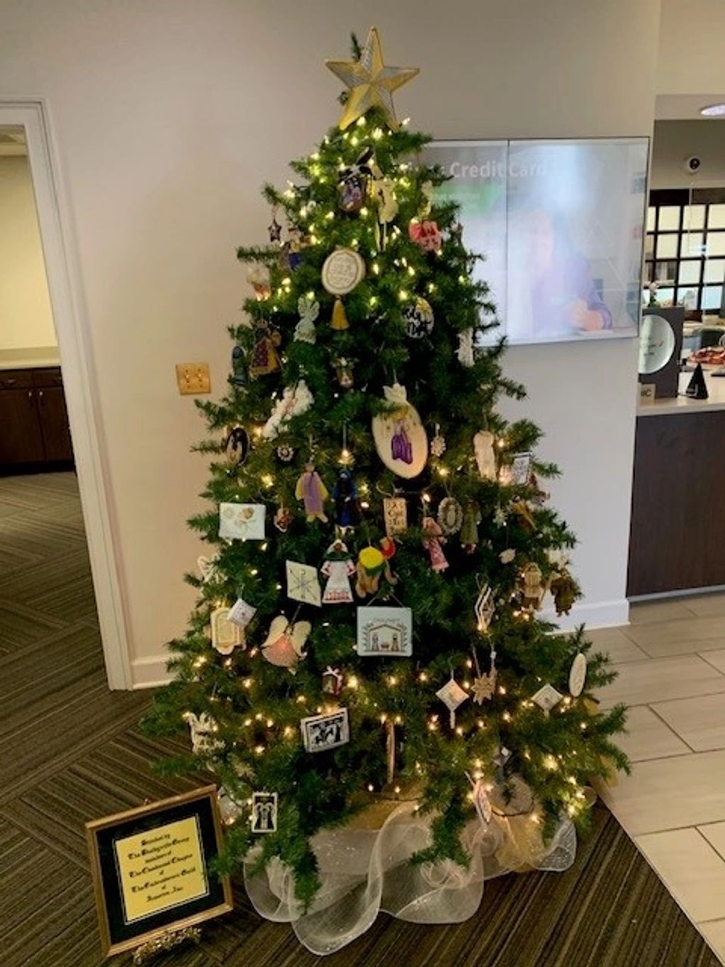 Shelbyville Satellite Christmas Tree at Community Bank 2021. The theme was Bookmarks and they were given to children coming into the bank.