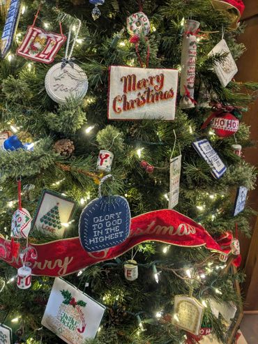 The Shelbyville Satellite Group is a sanctioned extension of the of the main Nashville Cheekwood Chapter group, accommodating needlework enthusiasts who are not able to meet during the work week or live closer to the Shelbyville area. Members of the Cheekwood Chapter and visitors with a love of needlework are welcome to join us. The meetings are held every 3rd Saturday of the month at First Christian Church, 309 Madison Street, Shelbyville, TN 37160, from 9am -12pm (except in December). After the structured meeting, which includes business, announcements and a "show and tell" segment, there is normally a program, with a project, which is different than the Nashville meetings – members are welcome to attend both the Nashville and Shelbyville meetings. After the meeting participants usually enjoy lunch at the church (potluck, bring your own or get something at the nearby fast food places, depending on the month) and then stitch for a while. Projects of the satellite include decorating a Christmas tree at one of the local banks each year with hand stitched ornaments and making bookmarks for second grade students in Bedford County schools. The Shelbyville Satellite leader for 2024 - 2025 is Pat Embree who can be reached at info@egacheekwood.org.
