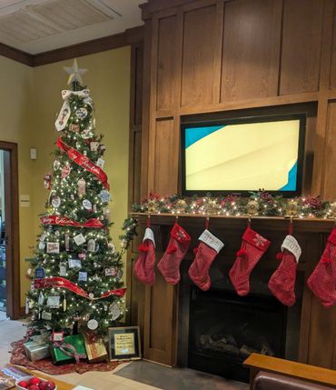 Shelbyville Satellite Christmas Tree at Heritage South Credit Union 2024. The theme was Winter Wonderland.